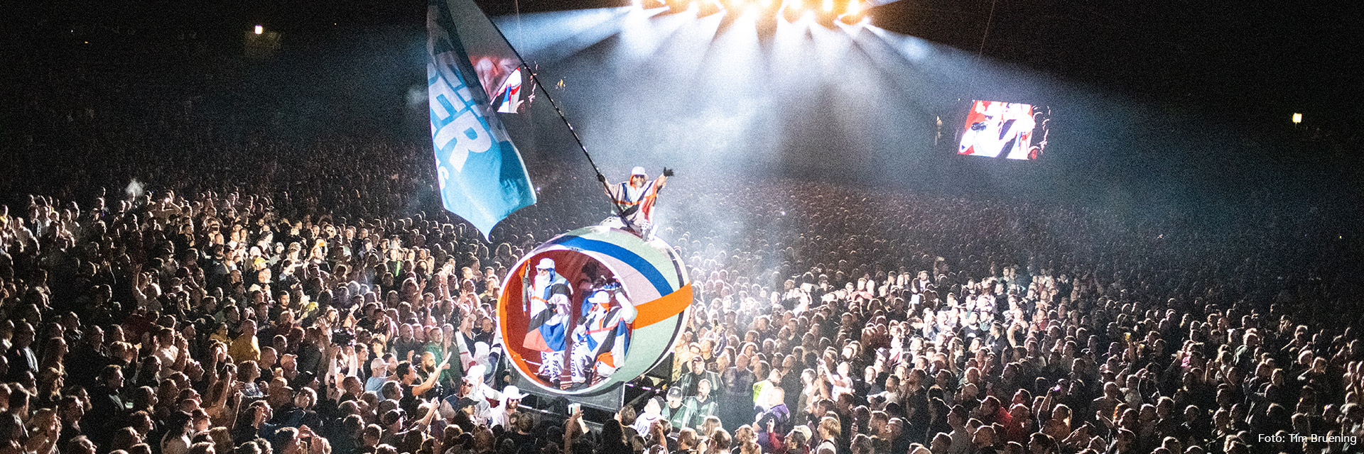 Sehr schön. Ihr seid für eure grandiosen Shows bekannt, die ihr selbst mal als „Kindergeburtstag für Erwachsene“ bezeichnet habt. Was treibt euch an, immer wieder neue kreative Wege zu finden, um eure Shows so außergewöhnlich zu gestalten?